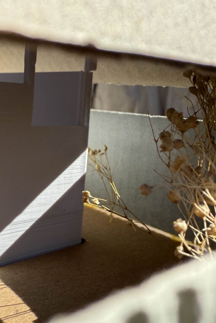 最近、実際に設計したものを工事するにあたり、どう作るかや、どう見えてくるかのスタディをする機会が多くなった。今まで、設計という想像上で考えていたものを実際に形にしなければならない場面である。これは間接光の実験で、実際にどう見えてくるかや、3Dプリントした部材の透過度など確かめたものである。そうすることで、今まで図面とにらめっこしていた目線が一段と上がるのを感じる。もう少し別の角度から物事を見ることができる。そこから、さらに設計やスタディを重ね、様々な視点から出来上がる建物は「良いもの」だと僕は思うようになった。