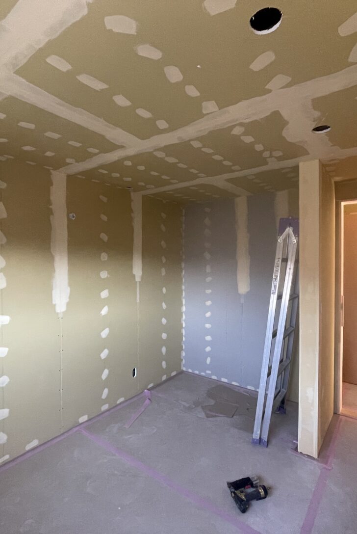 内装屋さんがクロスを張るためのパテをうっている。このようにして、ビスや石膏ボードのジョインとの段差をなくしていく。自分でやってみるとものすごく難しい作業というわけではない。ただ、職人さんはこれを延々と作業し続ける。一棟の住宅でどれほどのパテをうつ必要があるのだろうか。現場には星の数ほどやることがあるという言葉を聞いたことがあるが本当にその通りである。