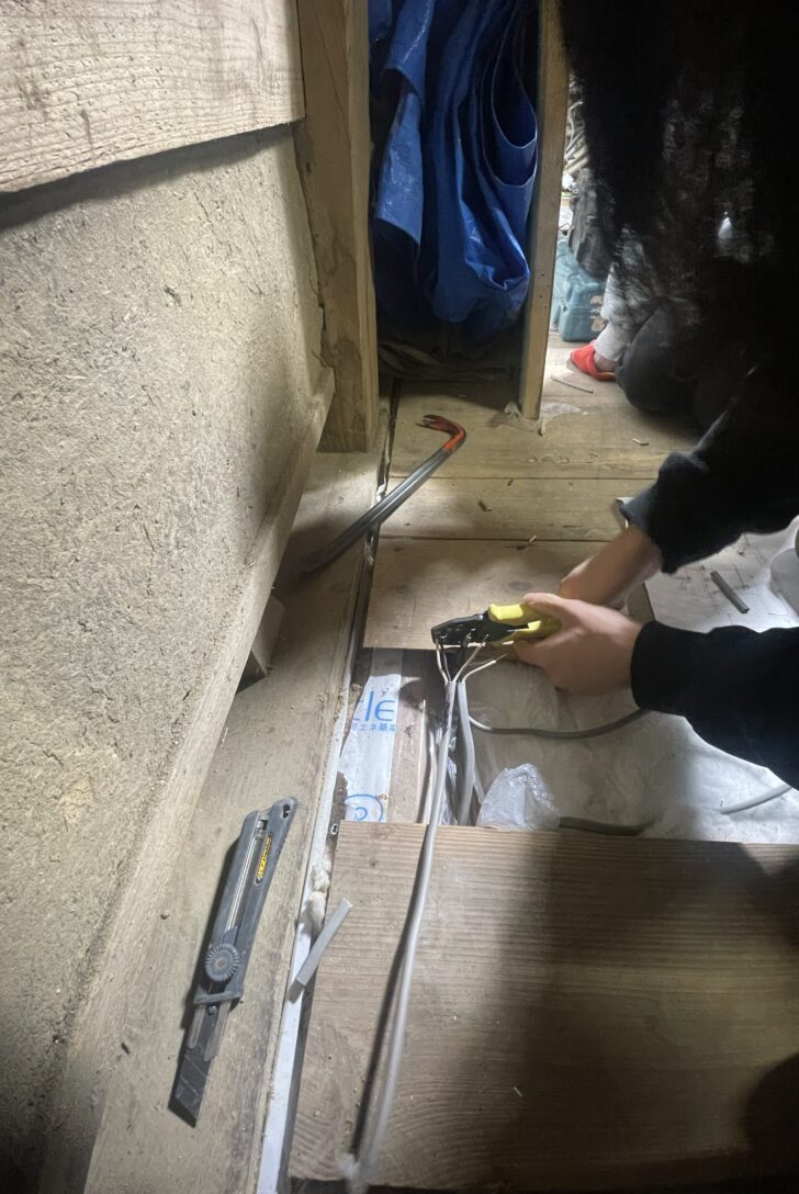 自社で所有している蔵で電気配線工事のワークショップが行われた。参加者のほとんどが大学生で、学生にとっては未知の領域だと思う。僕は電気工事の資格を持っていないが、先輩の代打でサポートに行った。現場で見たり聞いたりで覚えた知識しかなかったが、なんとか学生に教えながら配線を進めることができた。女子大生が脚立に登ってFケーブルを配線する異様な光景を見て、とても不思議な気持ちになった。事務所が位置するのは高齢化と空き家問題が深刻な郊外のまちで、その場所に学生が電気配線を学ぶために都内からやって来る。この素晴らしさの連鎖を止めないように、今後も多くの学生にアプローチしていきたいと思った。