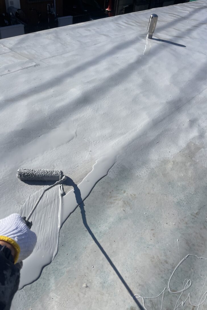 高島スタジオの拠点となる場所の陸屋根のシート防水を施工しながら、ここ最近現場監督に徹する時期が続いていたので自分で施工することの楽しさを感じていた。防水工事の施工はFRP防水しか経験がなかったのだが、似ているところもありつつ、塗料の混合の仕方や硬化のスピードには違いがあり、新しい工法に久しぶりに触れたことが新鮮だった。世の中には様々な工法があり、その種類の膨大さに先人たちどれほどの試行錯誤と創意工夫があったのだろうとしみじみと思う。