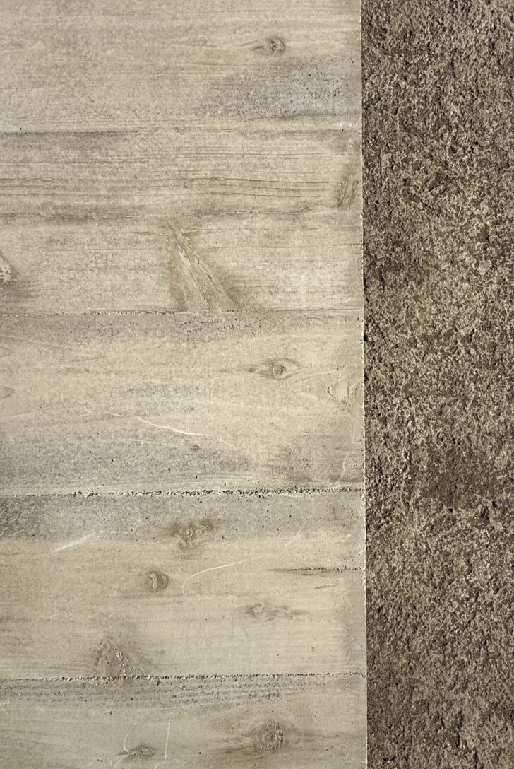 杉板型枠コンクリートのパネルを、お施主さんと一緒に制作した。コンクリート系の研究室出身という背景もあり、どこかでこの素材を使いたいという希望があった。実際に手を動かしてみると、材料はとても重く、なかなか大変な作業である。それでも、出来上がったコンクリートパネルには、使った杉板の木目がしっかりとコンクリートに転写され、独特の風合いが立ち上がってきた。このパネルは、外構のポストを囲うボックスとして使われる予定だ。家の「顔」となる場所に、自分たちにゆかりのある素材で、自分たちの手でつくったものが据えられる。住まいについて語るきっかけが一つ増え、そこからまた愛着も育っていくのだと期待している。