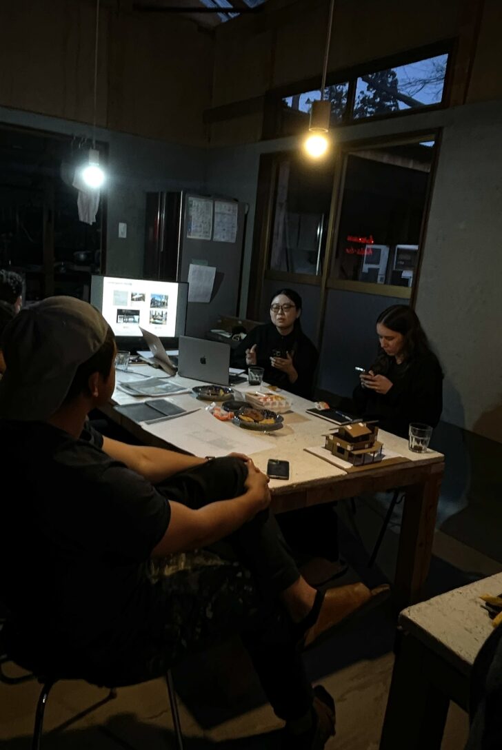 学生向けの設計ワークショップが開かれた。コマツハウスと呼んでいる最近ようやく取得できた空き家が対象だ。企画、運営をしている後輩たちがなんとも頼もしく、空き家とはどのようなものなのか、設計をどのようにするといいか、といった地に足のついた説明や解説を学生に向かってしている様子はとても安心感があった。また、kurosawa kawara-tenに初めて来てくれた学生と対話していると、慣れによって凝り固まってしまった、僕らは外からどのように見えるかということを改めて客観視するきっかけになる。設計ワークショップには学生に施主がいるような設計の場を提供するのはいいことだという考えや、パートタイムスタッフとしてリクルートしたいという意図は当然あるのだが、それ以上に自分たちに返ってくるものも多い。事実、設計ワークショップ期間中に筆が走ってテキストを書き進めているフルタイムスタッフが多かった。外に説明しなければいけないという強制力と返ってくる反応に刺激されて、僕らの内面にプラスの作用がある。このような相互作用が生まれる場が能動的に企画され、しかも、それが限界集落の中で行われているということは、ものすごく価値があることなのではないだろうか。