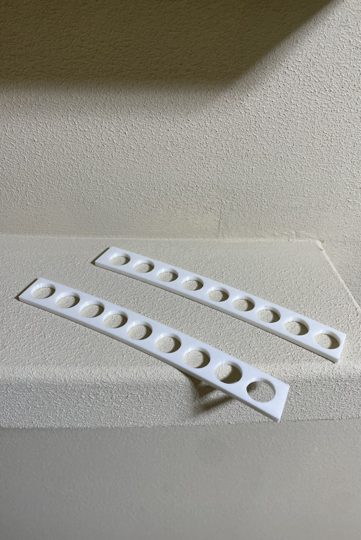 僕たちは、日々、新しい建築に挑戦している。規格材で建てられた、効率重視の家々が溢れかえる現代、僕らは時々、それらに逆らうことがある。それは、いつのまにか忘れてしまった、子供のときの「遊び心」に近いようにも思う。暮らしの中に、遊びを埋め込む。それは、壁に落書きをするように、自由な線であるかもしれない。今回の建築は、正円ではない、手書きで描いたような曲線の壁である。その壁を作るためには、ホームセンターで売っている道具では作れないこともある。この定規は、その壁を作るために、3Dプリンターを用いて、このためだけに作成した。このひと手間が、この先の暮らしを彩るスパイスになるだろう。