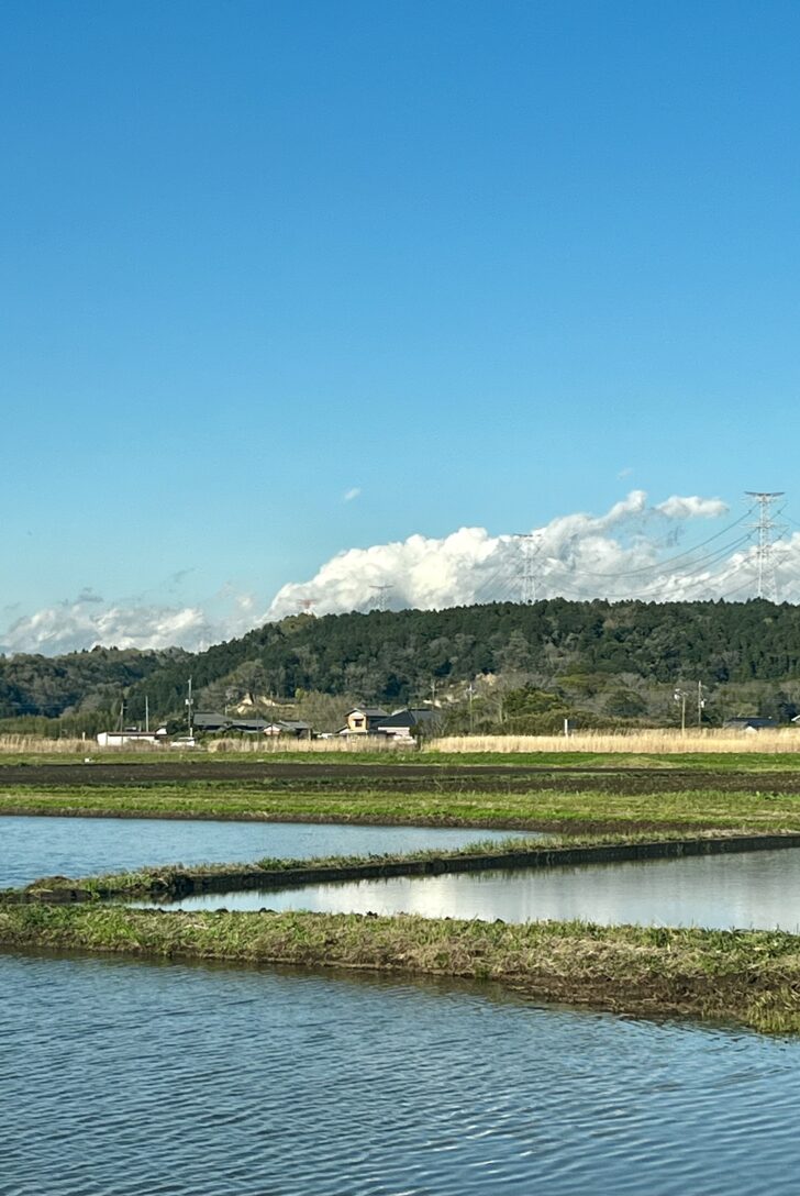 新年度が始まった。今の時期、南総地域では田んぼの水張りが始まる。田園風景といえば青い稲が一面に広がる景色を思い浮かべるけれど、田植え前の凪いだ水面に空が映るこの時期の風景が、わたしはとても好きだ。新しい季節の始まりを感じると同時に、自分たちが水に生かされていることにも改めて気づかされる。昨年度に引き続き、農家さんの谷津田を活用するプロジェクトも進んでいる。農家さんと話す中で、これまで知らなかった食糧生産の背景に触れる機会が増えた。食や自然、そしてそれらが成り立つ日常のありがたさを受け止めながら、今年度も活動していきたい。