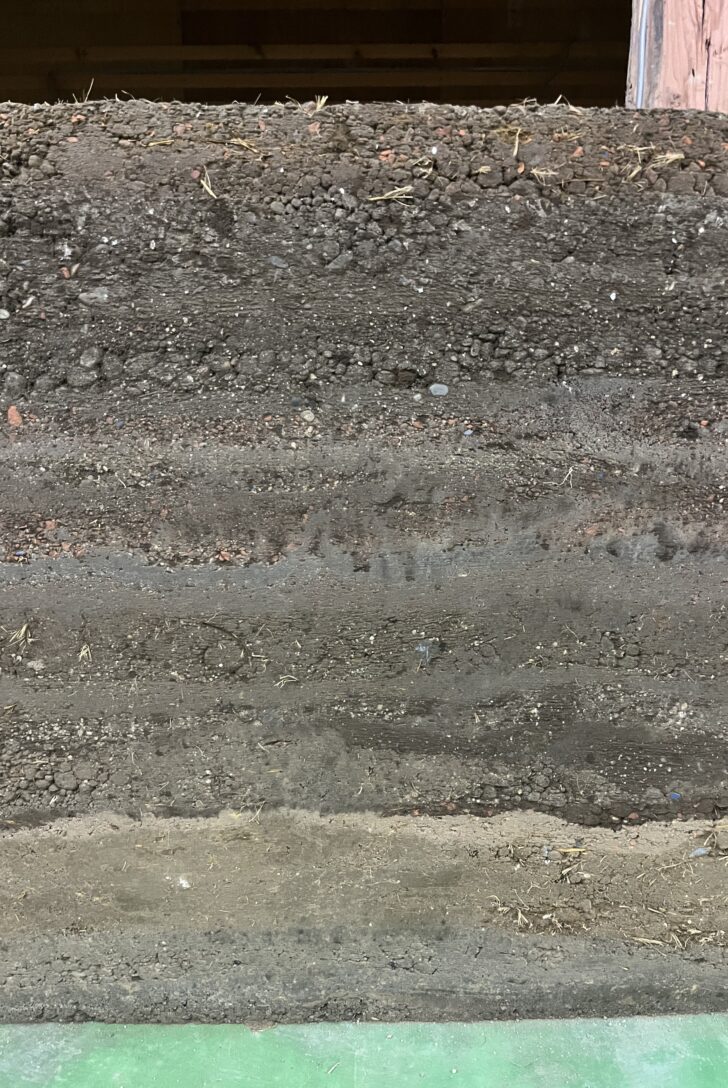 市原市月崎にて将来的に飲食店を開業したいというお施主さんのために、古民家の一角に厨房を設えるリノベーション工事を行っている。近隣にあるチバニアンや養老渓谷の地層から着想を得て、土をセメントと混ぜて突き固めて作る版築という技法により作るキッチンカウンターを提案しており、使用する土も計画地近隣で採集することを想定していた。そんななか、解体工事を始めるとちょうどよい材料を発見。古民家の土壁である。藁すさや漆喰も混ざるのだが、それも含めて版築にしたときにいい表情が出てきそう。現場から出てきたものが形を変えて使われる。処分の手間も省けて一石二鳥である。