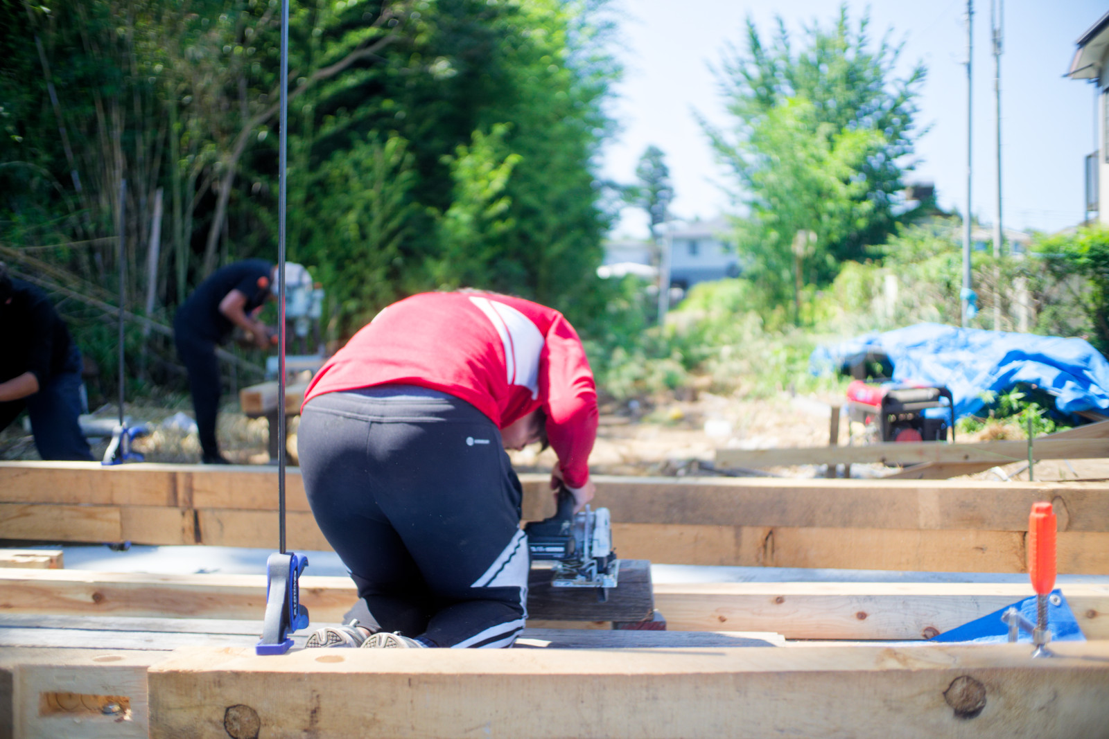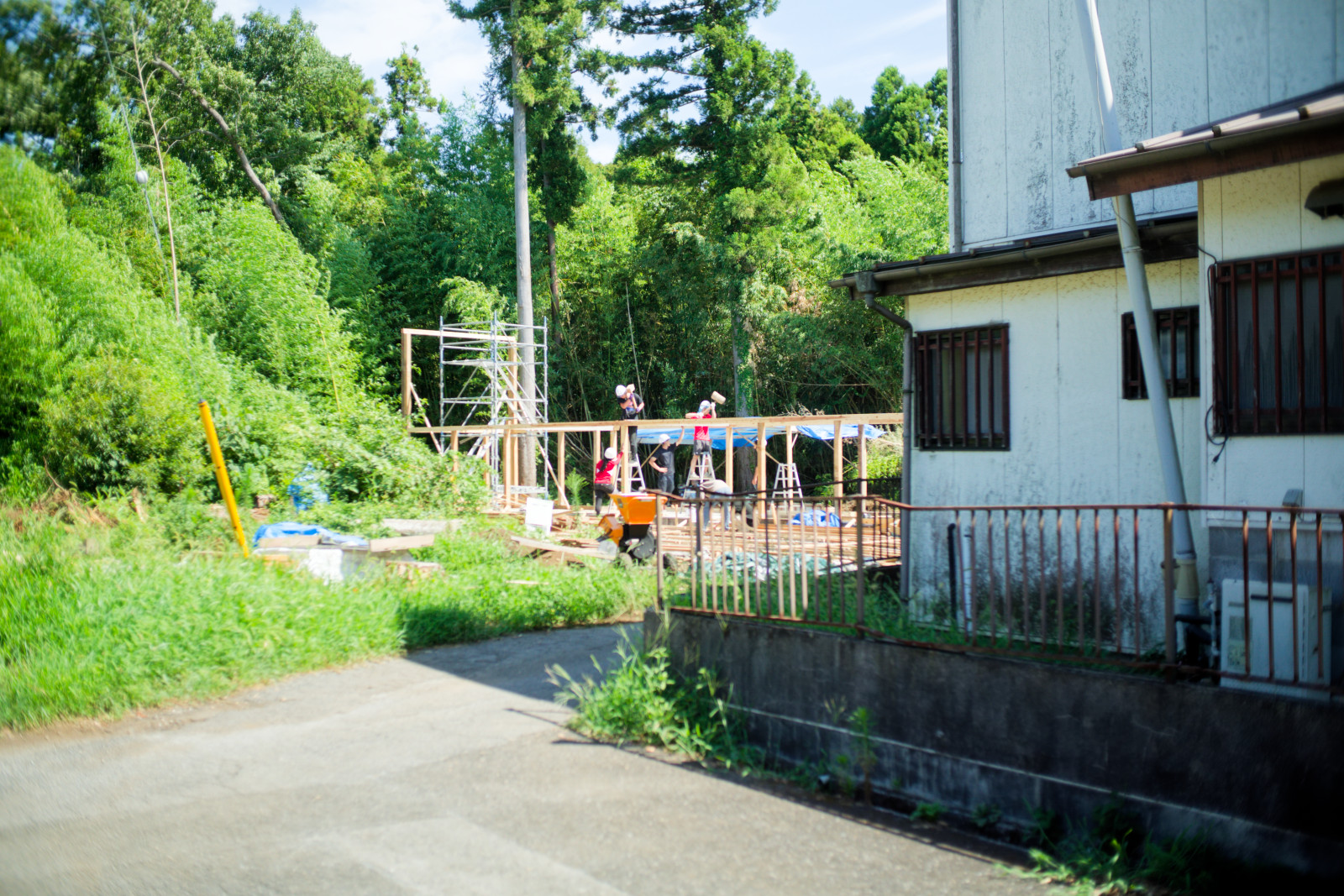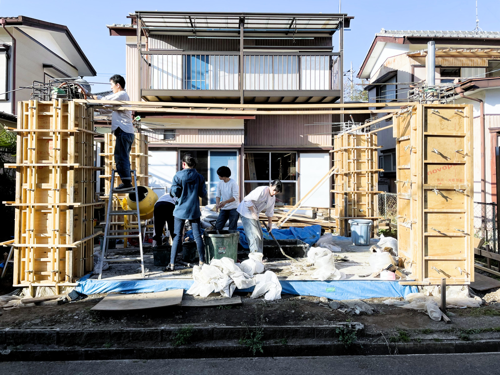 一般財団法人住総研が行う実践研究助成プロジェクトとして、東京大学大学院新領域創成科学研究科岡部明子研究室、Re-Shimizuuraプロジェクトのいとうともひさ、そしてkurosawa kawara-tenが共同してアフォーダブル施工の可能性を探るため、「学生が施工し、職人が教える」形式でのプロフェッショナルの手によらない施工の形を実践した。鉄筋コンクリート造を職人の手によらずに建てることができるのか、そして職人は教えるという役割を全うできるのか、さらに、建築設計者は施工においてその両者を仲介するような役割を開拓できるのかといった経済原理によらない建築行為の包含する文化や暮らし、そして人の持つ根源的な喜びとしてのコンビビアリティなどを考察しつつ進められたプロジェクトは、論文と鉄筋コンクリート造事務所の上棟、木造倉庫の上棟が行われた。