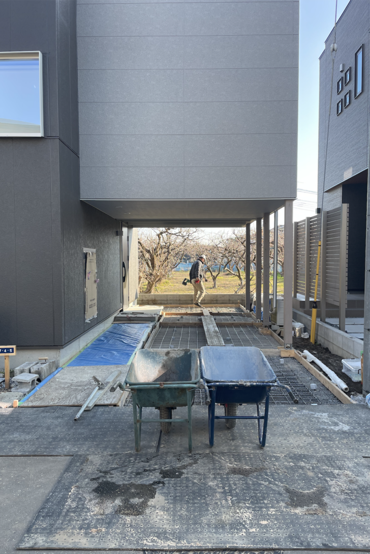 新築住宅の駐車場を打設した。