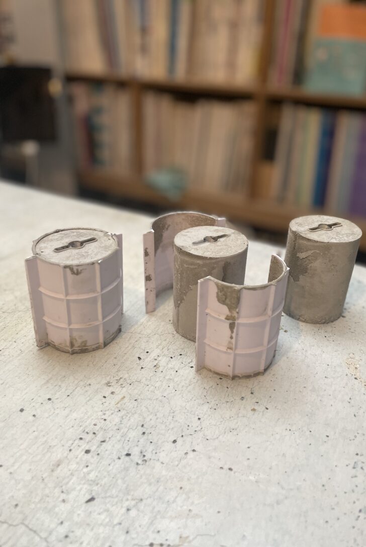 製品”ではない”部分を設計する。意味のない行為に見えるがこれこそ難しい部分な時がある。モルタルの相手をするときは特にここに気をつけるのだ。この素材は気難しい人のように振る舞う、混ぜ合わせた直後はドロドロとして全く自立しない。時間が経てば固まり自分の脚で立ってくれるが、見極めが甘いとボロボロと崩れて脆いのだ。かと言って長い間待たせてしまうと固くこびりつくようにみっちり締まって張り付いていたものを離してくれなくなる。こちらから常に状況をうかがっていないと上手い付き合いができないのだ。そんな気ままな素材の面倒を最後まで見るのが”型”の存在だ。我々が設計できるのはモルタルそのものではなくて、型の設計しかないのだ。始めは自立せずモルタルの身の全てを任せるしかなく、固まってきたころに、ちょうどいい塩梅で張り付きすぎず、形を崩さず支えてくれるような型を設計できないとモルタルの面倒は見切れない。最終的には製品に全く現れて来ないが、この型をどう作るかを考えないと製品にならないのだ。そんな、製品ではない部分に気を配る設計というものがあるのだ。