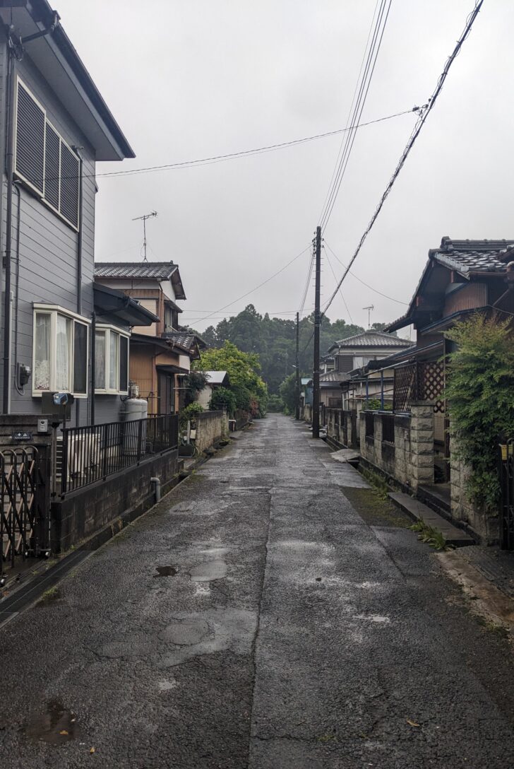 ここは千葉県市原市の西国吉という地域にある戸建て団地だ。高度経済成長の時代に増加する東京湾臨海部の労働者の住宅需要を賄う為に、元々里山だった所を切り開いて住宅地が造られた。普段は住宅地だとしか思わないが、散歩をしていてふと、通りを見上げると鬱蒼と繁った林が遠目に見えくる。そうして、元々は山だった所に今自分はいるのだなということを実感する。車で出先から帰ってくると目指す先は山なのである。その山を登っていくと突如として住宅地が現れてくる。元々東京の住宅地で生まれ育った自分にとっては、余りにもスプロールしすぎているその住宅地が元々どういう場所だったのかという地理的なことを実感することは少ない。右を見ても左を見ても上を見ても、何処まで行ってもそこは住宅地でしかない。その土地を感じることは出来ないのだ。今は住宅地で暮らしつつも山の中で生きている。遠くでキジが鳴いている。