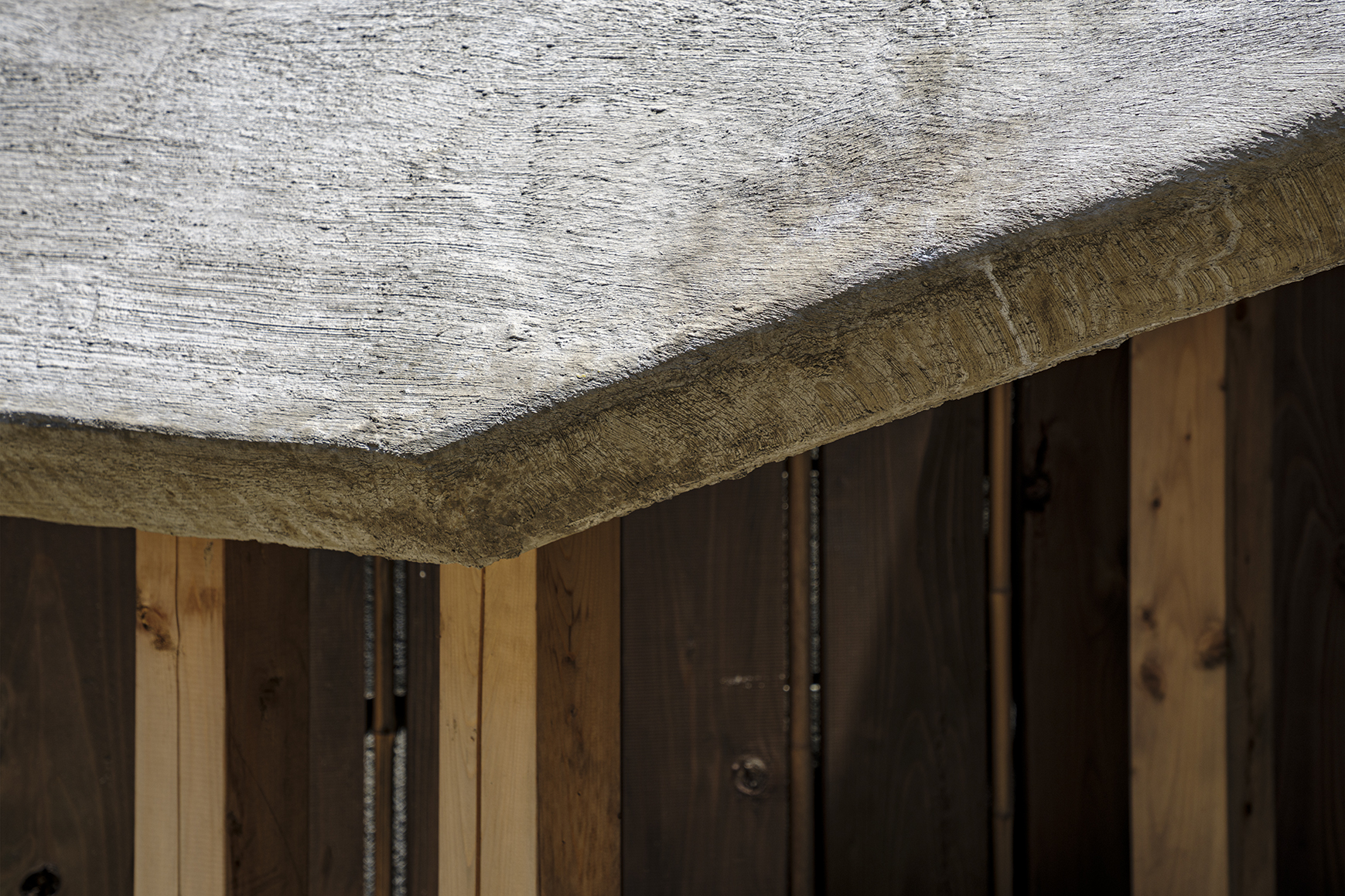 また、この建屋はプロの職人ではなく、施工の得意な建築家と、物作りが得意な芸術家によるDIT(Do It Together)によって建てられている。規模が小さいことと電気や水道といった設備がないという腰掛待合であるからできることではあるが、もう少し一般化して考えると、既に建てられて機能している建築物がある状態で作る増築においては、生き死にに関わる喫緊の要請は発生せず、建物を建てるという行為自体を目的化することができるとも言えるのではないだろうか。建物を建てる、木を切る、削る、モルタルを練る、土を掘る、そして設える、一連の行為は人間が生きるうえでシェルターを獲得するために必要な行為であると同時に、外的対象に対して影響を与え、その手応えを感じることができる行為として、根源的な喜びを含んだものだろう。家が商品になって久しい現代において、これらの行為もまたワークショップなどの商品として消費せざるをえなくさせられ、選んで購入する以外は許されないかのような先入観を植え付けられている。しかし、これらの行為によって人は自分自身で環境を改変し、改善し、より良い状況を作ることができるという自信と誇りを持つことができるはずである。そして、必要な材料はそこら辺に転がっていることや、必要な道具は作り出すことができるという隠されてしまった最も基本的な原理に立ち返ることができる。また、作っている最中に計画を変更したくなったなら再検討し、手を動かしながら形状を変更することができるという当たり前を教授することができるのも、法律や機能の制約がとても少ない小さな建築物だからこそできたことだというのも、とても皮肉めいている。