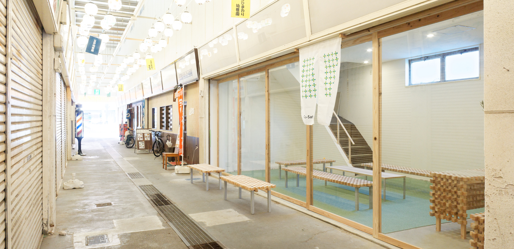 昼間の時間帯に人の気配や活気が顕在化することを狙った街づくりの一歩としてのコーワーキングオフィスであったため、気候の良い時期やイベント時などには1Fを開け放てるように、また、中で起こっているアクティビティも良くわかるようにガラスの引き戸で入り口を作ることにした。