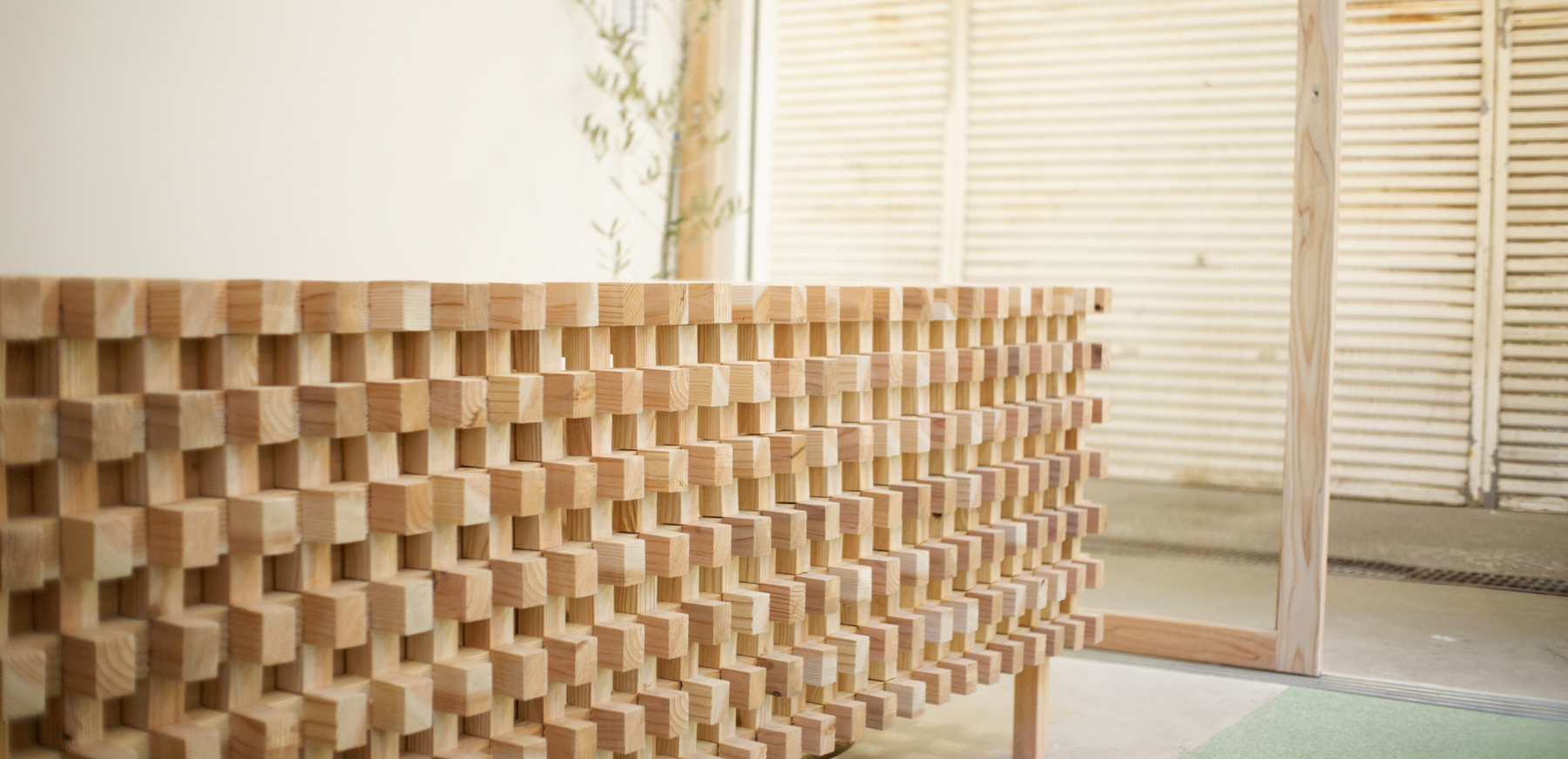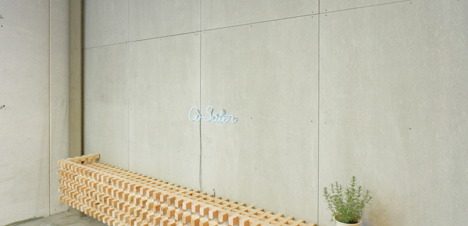 また、家具は交差点を図式化したロゴを反復するように角材を組んで作られている。イベントのために壁面や床面にあまり造作を作りつけることができなかったため、この角材の組み合わせが小さな奥行きを作り、平面的になりすぎる店舗空間全体に深みを持たせることを狙った。