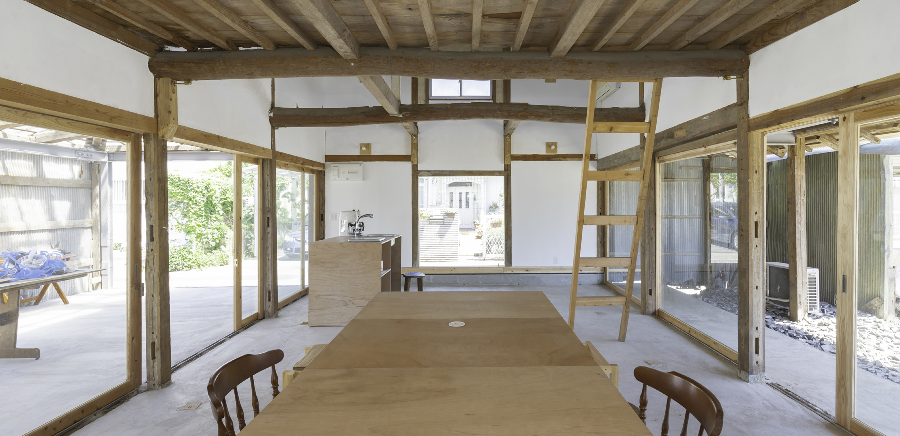 そうであれば、この蔵の改修も使えるものは引き続き使い、また、新しいプロジェクトのための必要な新しさは古いものや既存のものを最大限尊重して決定されるべきだろうと考えた。まずは地域での活動や交流に必要な開放性を作るために蔵の東西面を全てガラスの開口部とした。