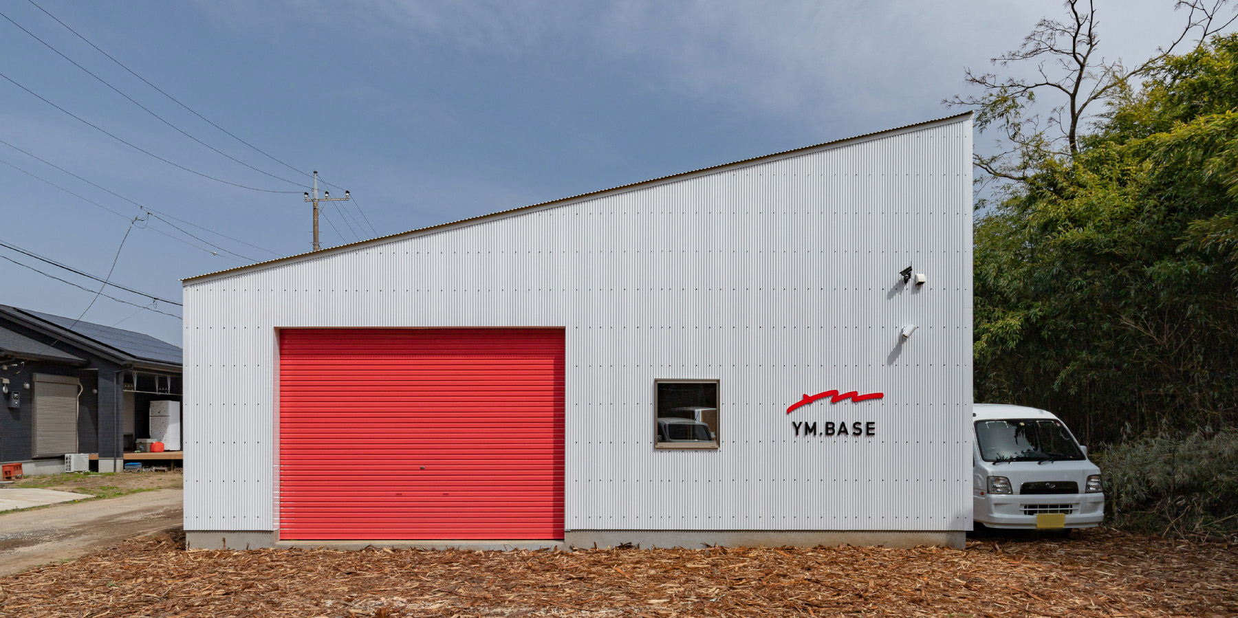 旦那さんは当初、自動車整備のための「カーポート」を後付けすることや家にガレージが付属する「ガレージハウス」をイメージしていた。しかし、施主夫婦のライフスタイルを考えると、ガレージを家と同じくらい大切な存在として扱い、まるで店舗かのように設える「ガレージとハウス」の形式が良いと考え提案することにした。また、そこに住む人のアイデンティティが可視化されるような住宅を作ることで、無個性な郊外のロードサイドに新しい風景を作ることができればと期待した。