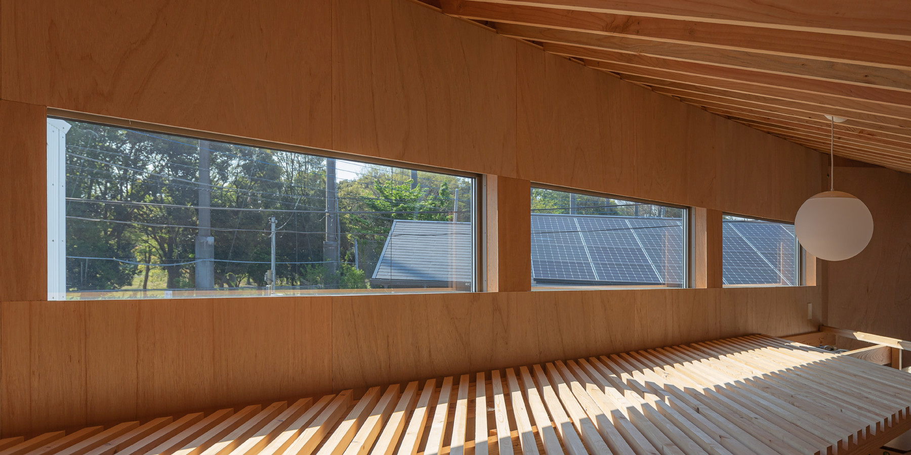 南側の窓だけでは採光に不安があったので、北西側の壁にハイサイドライトを設けて天井をすのこで作った。これにより一日を通して多様な自然光が屋内に落ち、時間のうつろいを感じられるような空間となった。