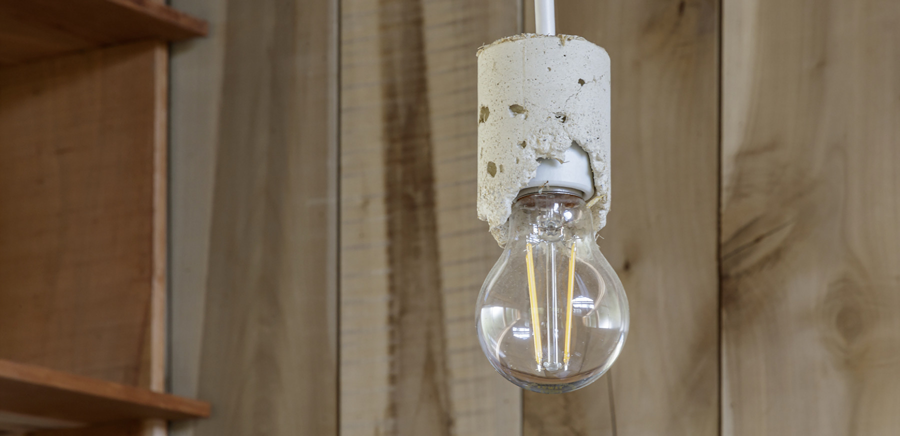 内外装には集落の裏山で使わなくなり大木になってしまっている広葉樹から、樫、山桜、小楢、朴木を切り出して製材し使用している。