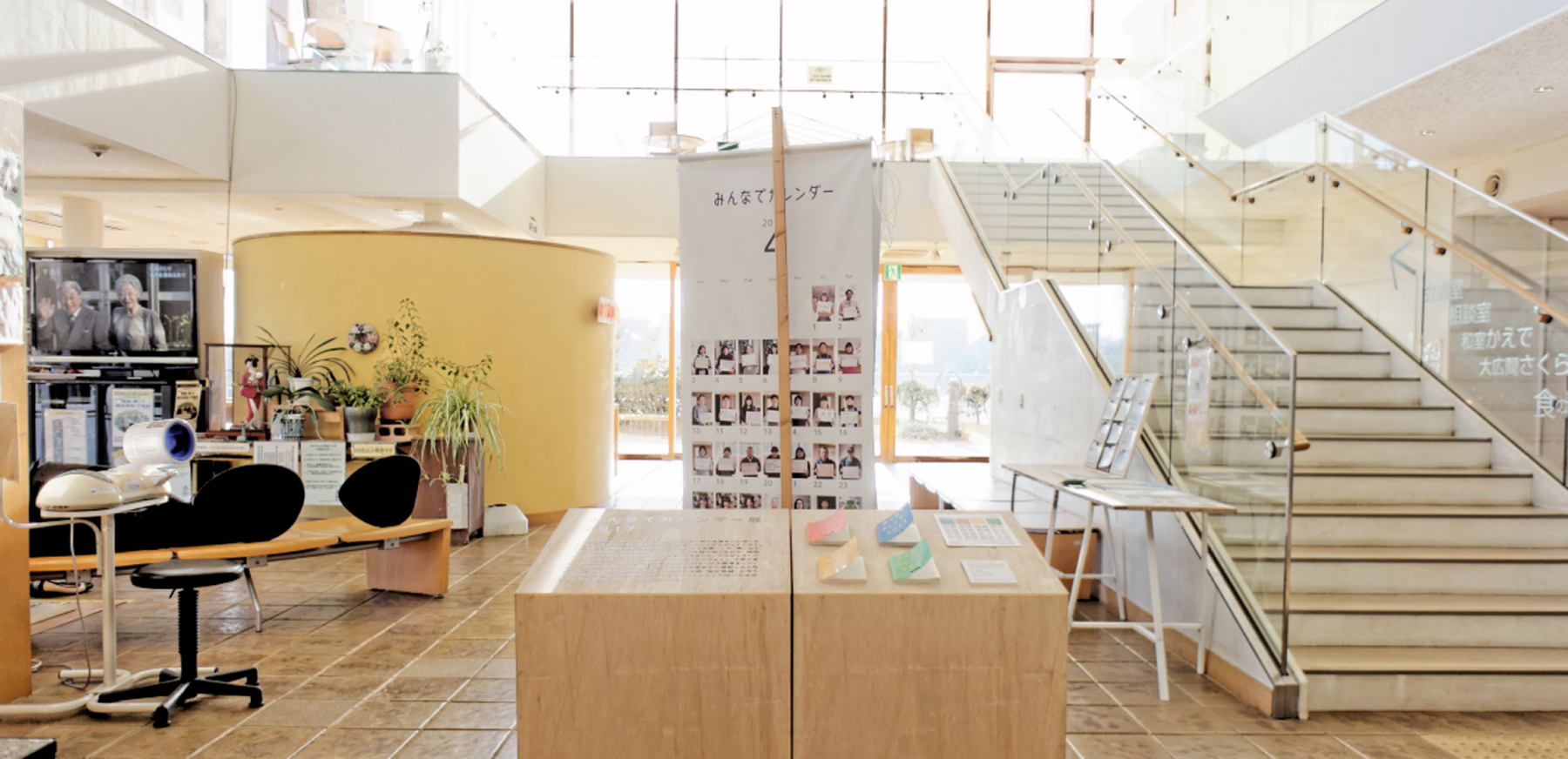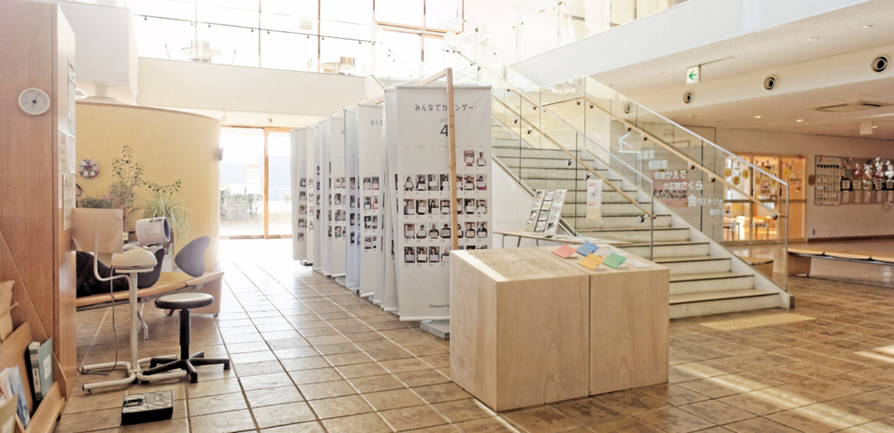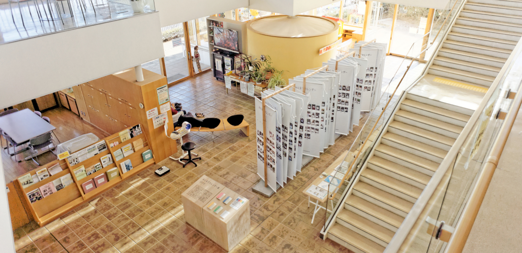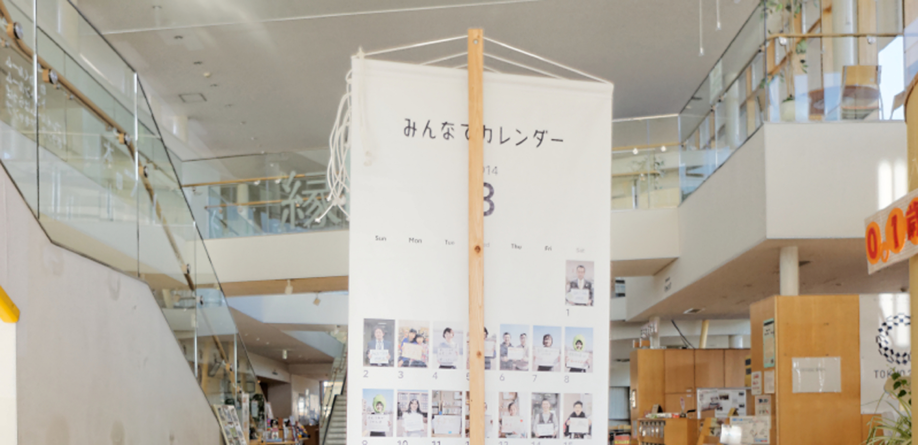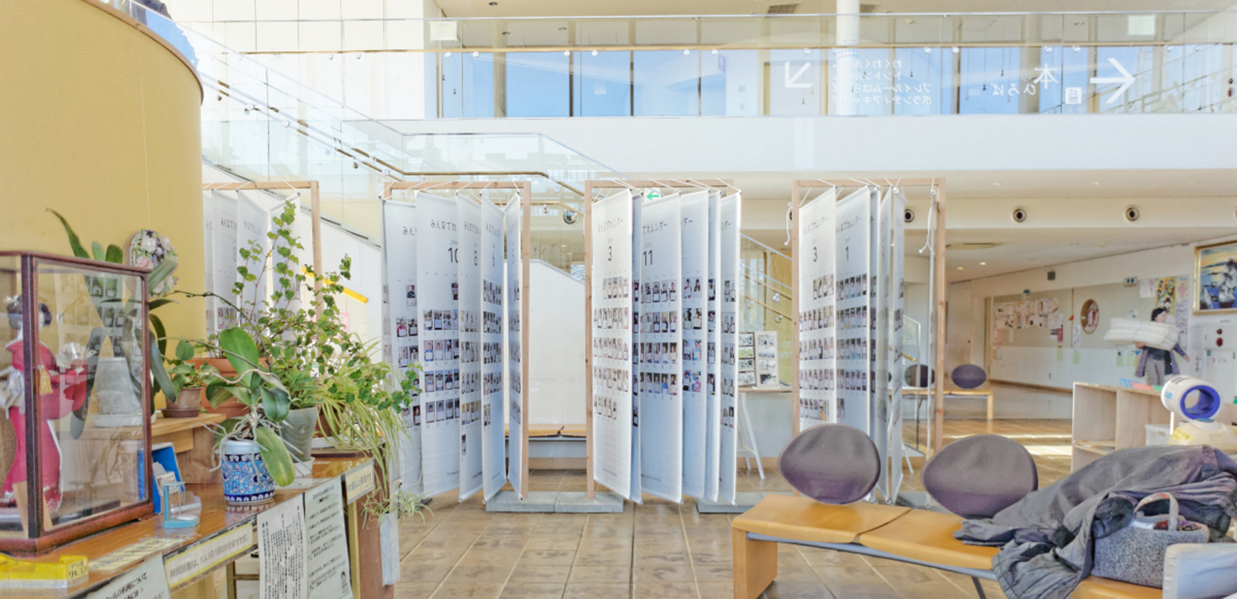 千葉県四街道市のプロモーション"ドラマチック四街道”で作成されたカレンダーの展示什器のデザイン。
