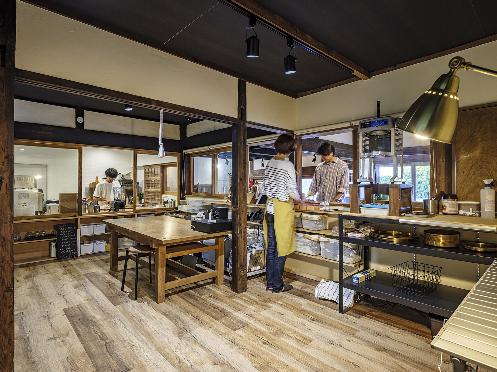 千葉県睦沢町にある長らく空き家となっていた築100年を超える古民家を、地域でチャレンジする方のためのシェアキッチン、シェアスペースとして改修する計画である。客席やトイレ、外装修繕など多くの部分を施主自身のDIYによって工事を行う一方、設備計画等の機能面で専門的な知見が必要となる厨房作業室の設計施工、建物全体のインスペクションや電気計画等のアドバイス、保健所や消防との協議のサポートを弊所で行うこととなった。