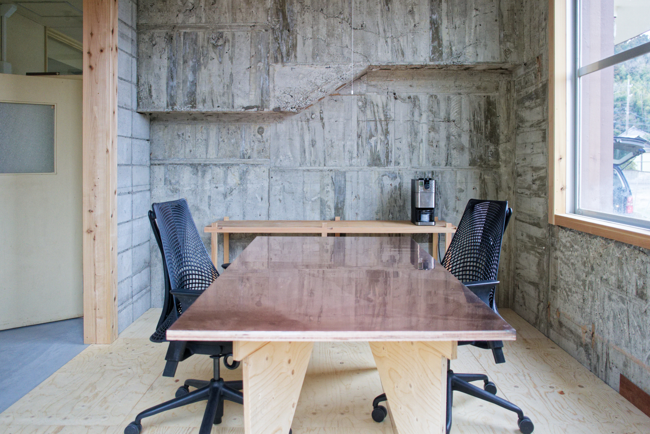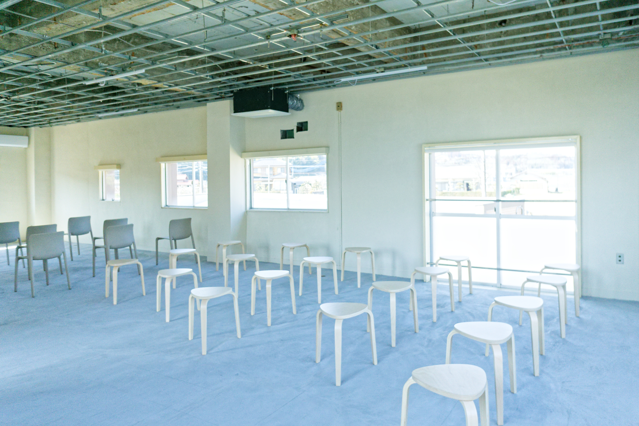 高滝のエリアは市原市南部の中でも比較的観光に重心が置かれているため外部からも企業が参加しやすい土壌があり、そのため、観光を中心としたビジネス誘致のためのコーワーキングや、プレゼンテーション、打合せスペースをもった建物へとよみがえらせた。多くの予算は屋根の防水工事や水道再敷設、空調やトイレといった機能面に割かれたため、インテリアに掛ける予算はほとんど無かった。そこで基本的にはボロボロになってしまっていた内装建材を剥がし、土間床として薄くモルタルを塗る程度にとどまった。それでもリモートワークなどが急速に受け入れられて急激に世界が変化する中で、都市部の人達が利用しに来ても気持ちよく使ってもらえるような設えをする必要があった。